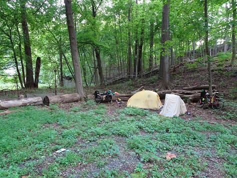 On a long bike tour, you realize quickly that legitimate campsites are sparser than you expected. No problem!