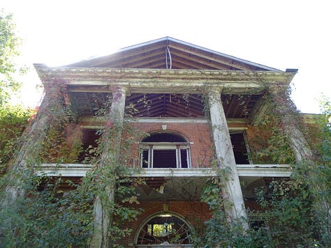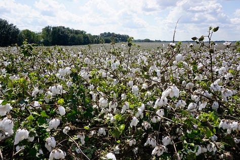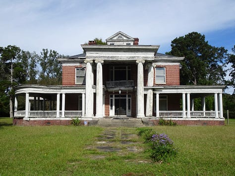 Humid heat in the late afternoon soaking so deep in your bones you feel almost cold, is there a word for that? Clammy sweat bursting from your pores, slicking your skin like an embryonic slime. Cicadas droning and crickets chirping to herald dark’s arrival. Dew-drenched mornings leaving every surface spotted with shivering pearls of moisture. Kudzu suffocating entire landscapes beneath a verdant blanket. Expansive fields throwing forth shock-white cotton blooms. Dilapidated plantation homes sitting amid towering oak trees weeping with Spanish moss. Stagnant sludgy creeks running brown or else swamped over entirely in a viridescent algal film.