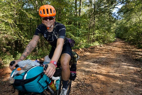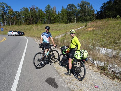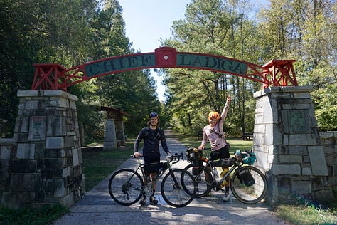 Snatches of the Alabama Crimson Tide football game drifting from a car’s radio as it moseys past with windows rolled down. Friendly strangers saying ‘hi’ and ‘where y’all headed’ and ‘stay safe out there,’ taking time to stop and chat and rarely hurrying. Dogs whipping themselves into a fury to chase when you pedal past, baying and nipping at your heels. Mosquitoes eating up the skin on your shins and ankles at every chance, leaving you constantly scratching and covered in little pink welts.